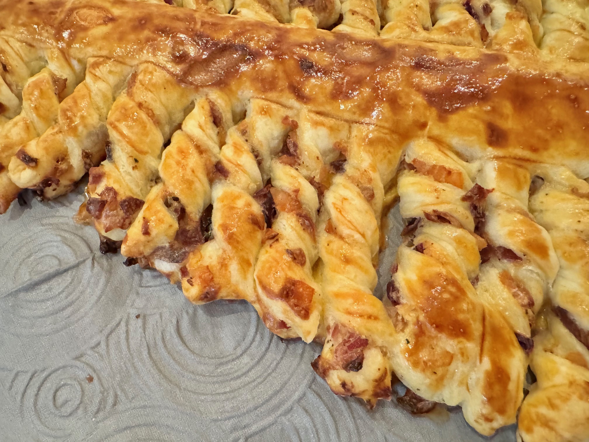 Ich kann nur sagen: SEHR LECKER. Und wenn Weihnachten vorbei ist, seid kreativ, schneidet und legt aus gefüllten Teigplatten Blumen oder Phantasieformen und bereichert Geburtstage, Grillfeste, was auch immer.