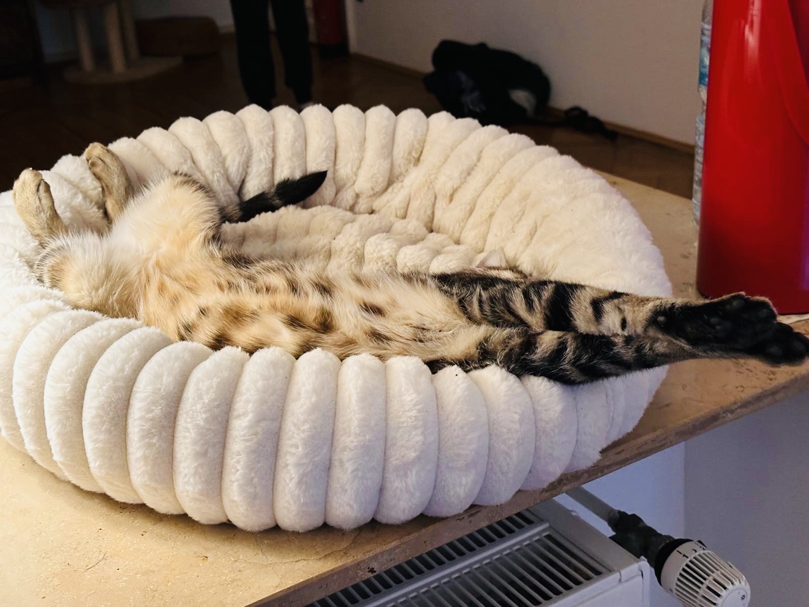 Dehnen und strecken … fangt damit morgens im Bett schon an. Ich mach’s Euch vor.
